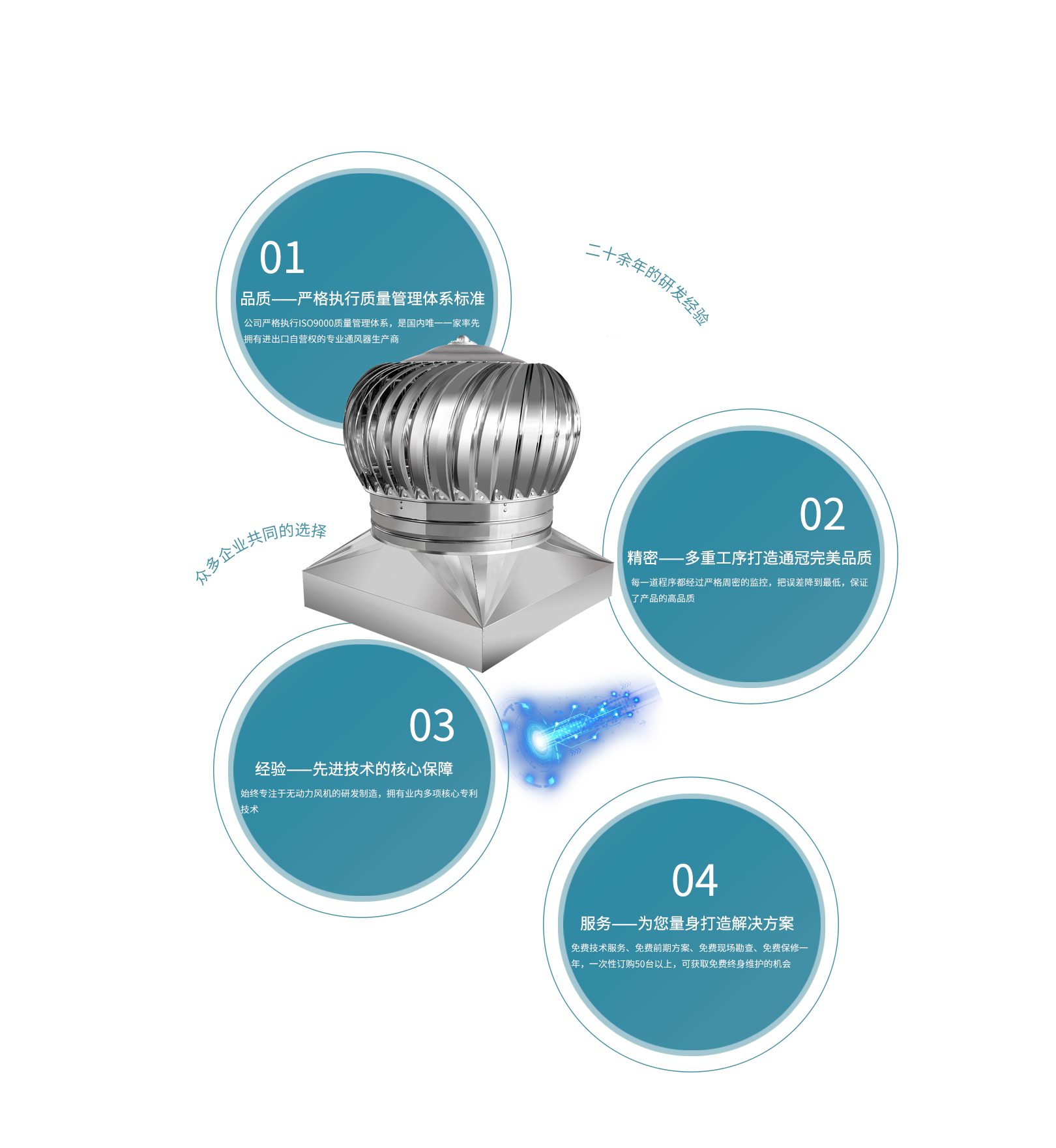 天長市通冠無動力風機有限公司,是集研發(fā)、生產(chǎn)、銷售于一體的,專業(yè)無動力風機生產(chǎn)廠家。公司坐落于205國道南京與揚州之間,位于省級高新經(jīng)濟技術工業(yè)園,交通便利。“通冠”有著一支技術精湛、服務非凡的隊伍。所有一線技術工人技術熟練、質(zhì)量意識強。公司嚴格執(zhí)行ISO9000質(zhì)量管理體系,一貫貫徹“以質(zhì)量為生命”、“以信譽為根本”、“以服務為基礎”的理念···[查看詳細]